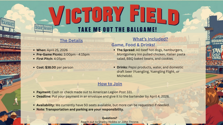 Want to see more or have a suggestion about our site? If so please email Webmaster at Webmaster@brownsburgpost331.org