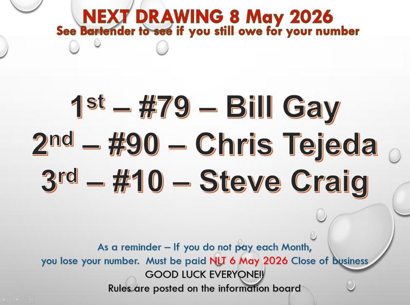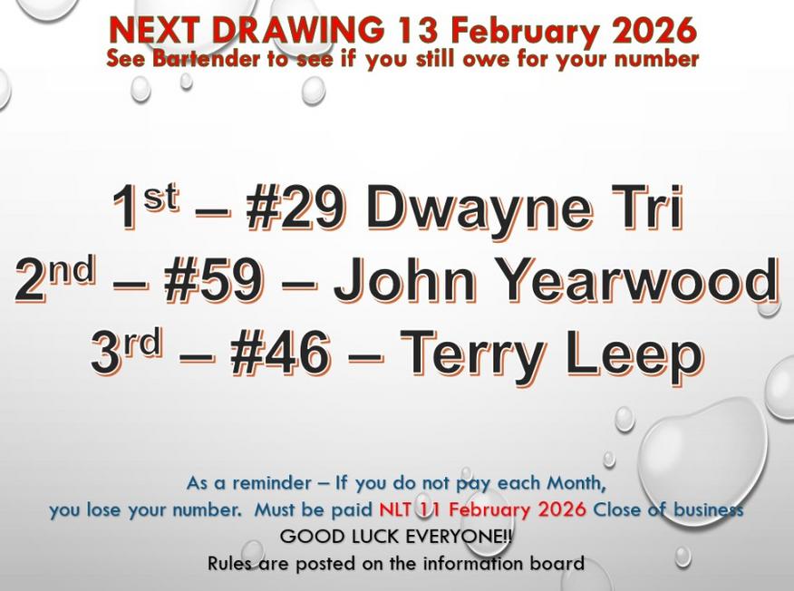 *If not present for either game, winnings are 70% of the dollar value drawn*
